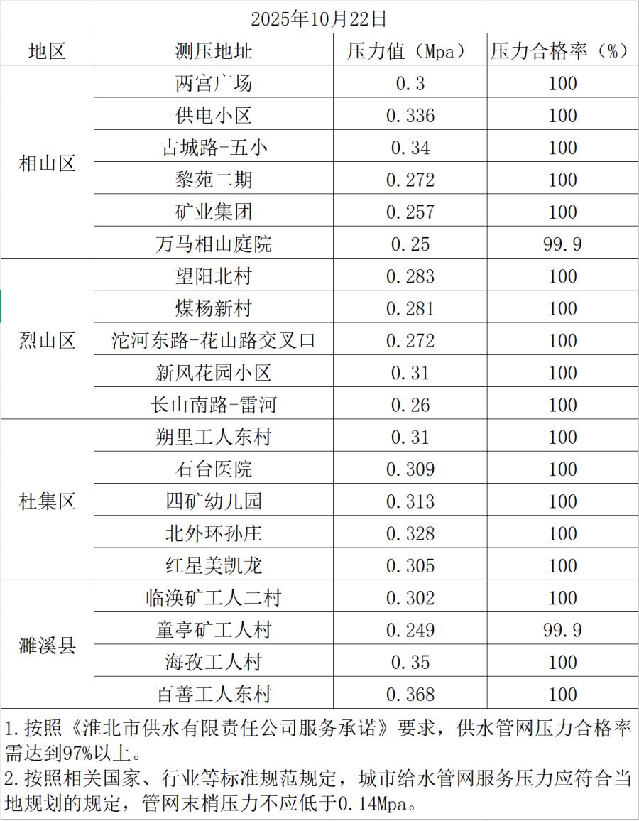 2025年10月22日水壓抽測公示